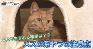 メスは大文字のO遺伝子が2つ必要なのに対して、オスでは1つあれば茶トラになります。そのため、茶トラ猫のうち80%がオスだといわれています。