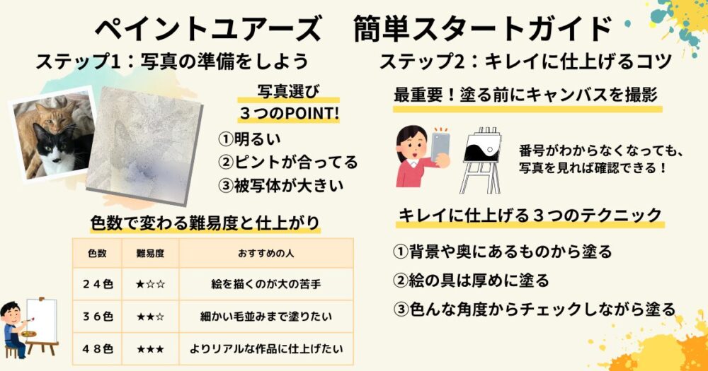 • 写真を「数字付きのキャンバス」にできるから初心者でも始めやすい