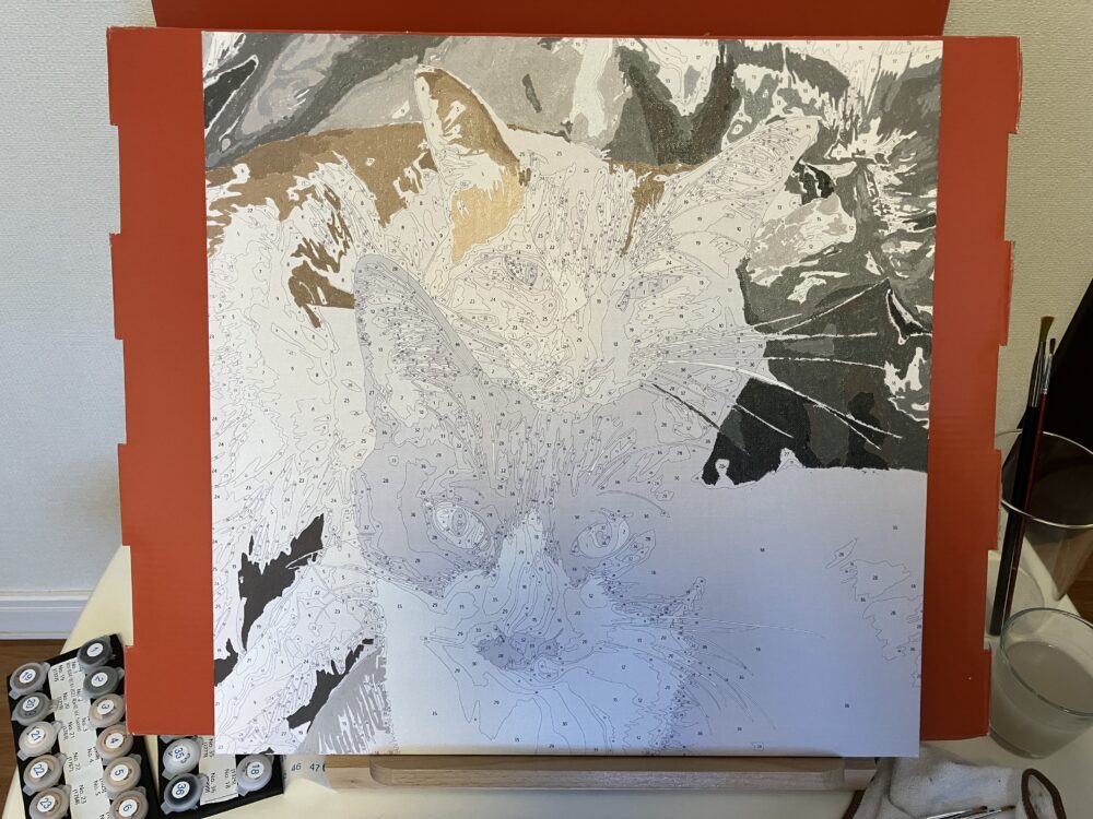 届いたキャンバスには小さな数字がふられており、同じ番号の絵の具で塗っていくだけ。初めての方でも迷わず取り組めるので、絵に自信がない方にもおすすめです。